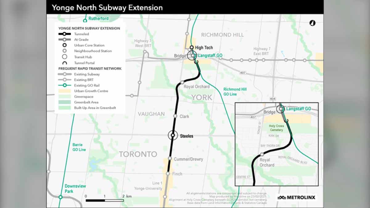 Продовження гілки метро Yonge є частиною великого плану уряду Форда щодо розширення мережі. Цей проєкт є одним із чотирьох пріоритетних, які увійшли у «Новий план метрополітену Великого Торонто».
